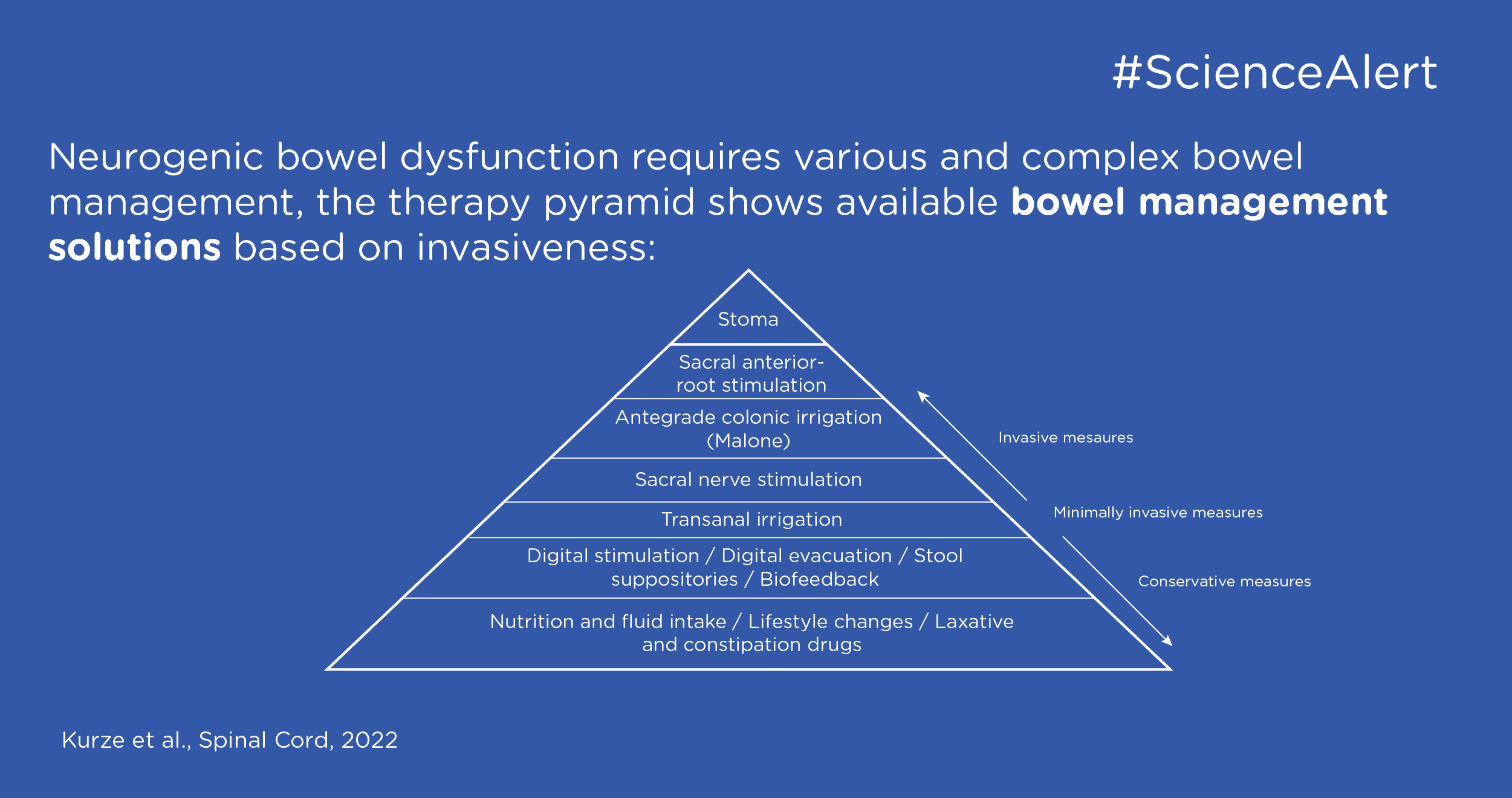 is time to change bowel management, dietary advice, bowel evacuation techniques, use of pharmaceuticals to surgical treatments.