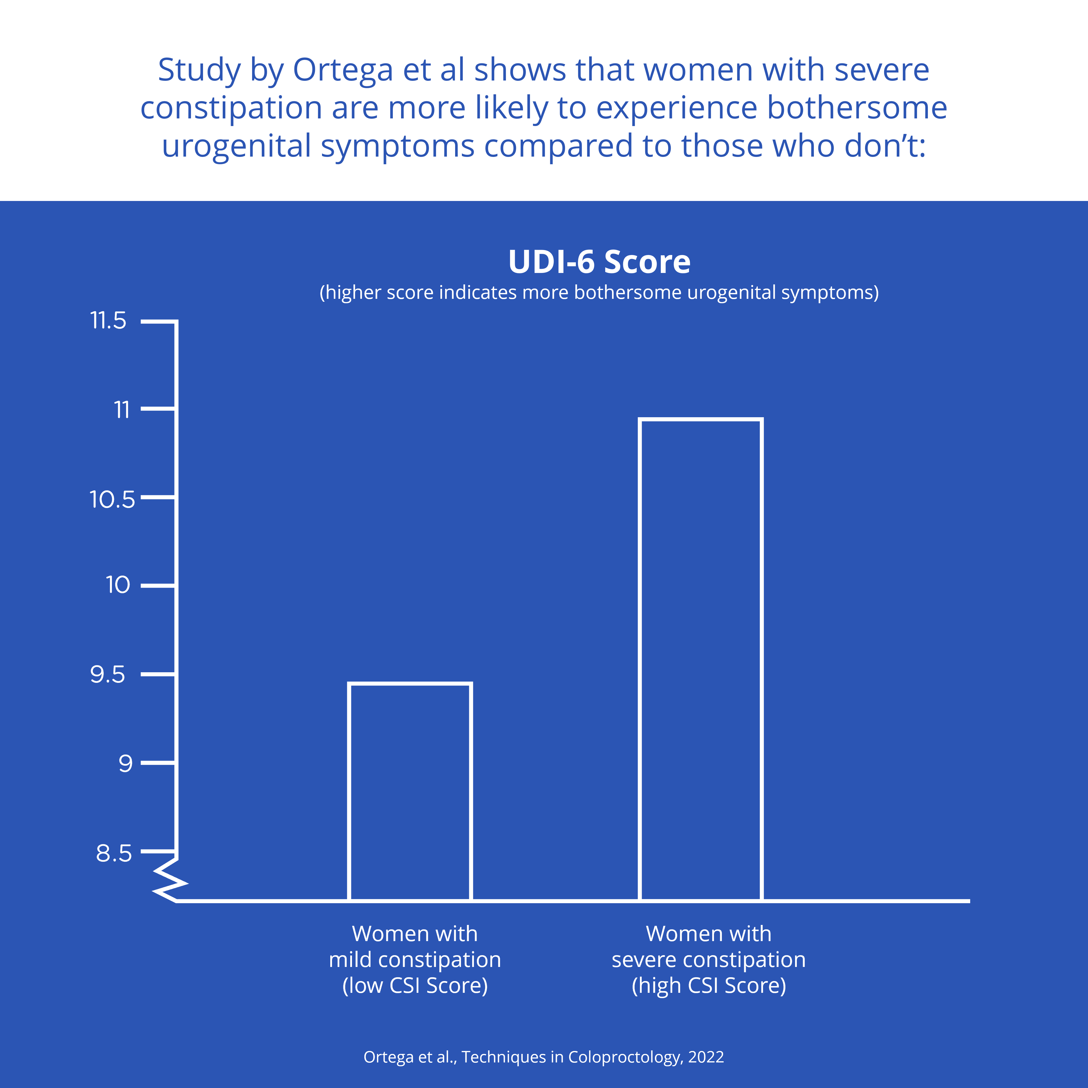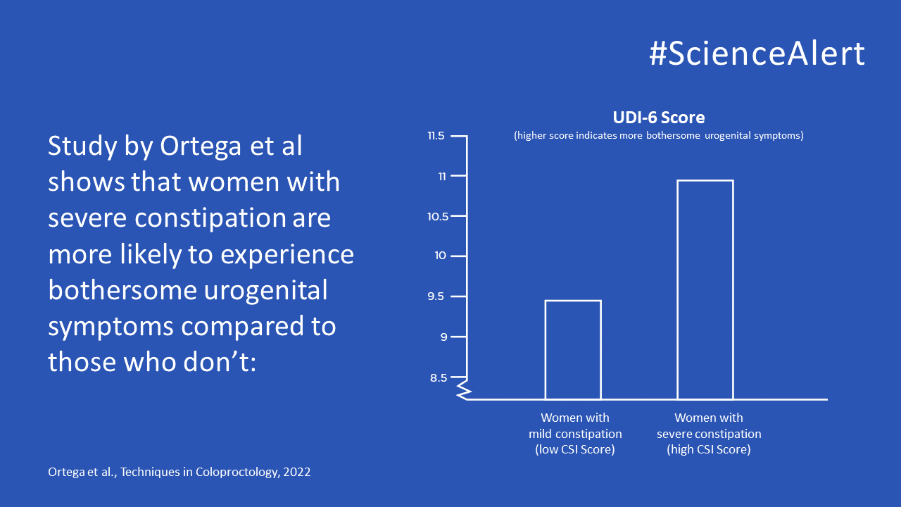 Ortega et al conducted this retrospective study at a pelvic floor disorder center to evaluate the impact of constipation on urogenital symptoms in women. Bowel problems in women are hypothesized to be associated with the presence and severity of urogenital symptoms and linked to pelvic floor dysfunction.