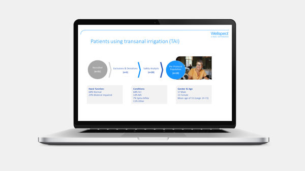 This is a summary of the results from a short-term evaluation of a novel electronic transanal irrigation system, Navina Smart, in patients with neurogenic bowel dysfunction. The clinical study investigated compliance, perception, satisfaction, and safety of Navina Smart.